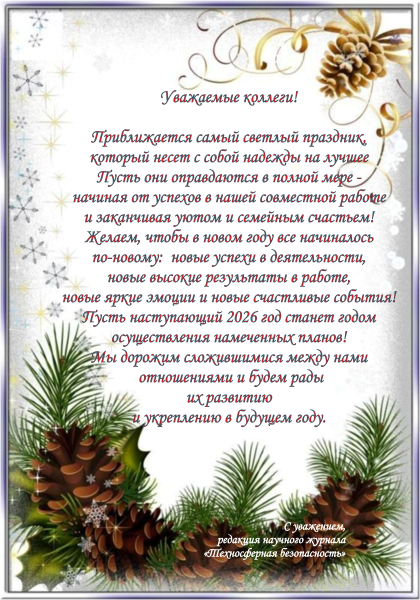 Журнал «Техносферная безопасность / Technosphere safety» предоставляет авторам возможности выйти со своими научными идеями на широкий круг профессионалов, а читателям – постоянно быть в курсе актуальных проблем комплексной безопасности.